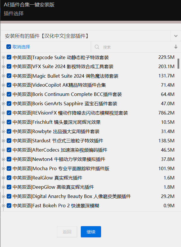 插件全:插件全面几乎包含市面所有AE插件,更有常用插件中英双语。可自定义选择,单独更新插件不冲突。